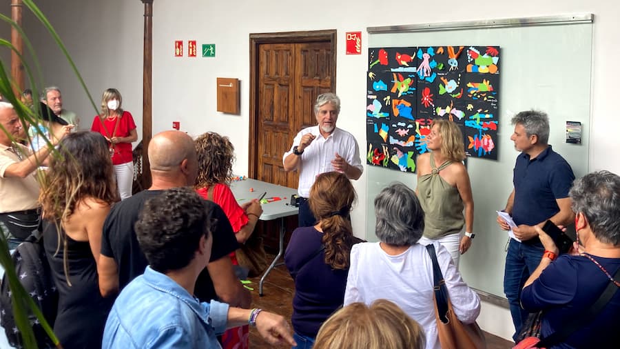 El taller, que enriquece la programación de junio de Proactivas desde una perspectiva artística, arrancó con una primera parte más divulgativa en la que Estefanía González, coordinadora del MACEW, y Alfredo Díaz, director de la Fundación César Manrique, impartieron una charla sobre el activismo ambiental del artista y el potencial transformador del arte respecto a los retos medioambientales de la actualidad. A continuación, en una segunda parte más práctica, las personas asistentes participaron en un taller creativo sobre fauna atlántica, cuyos resultados fueron expuestos en un panel del museo.